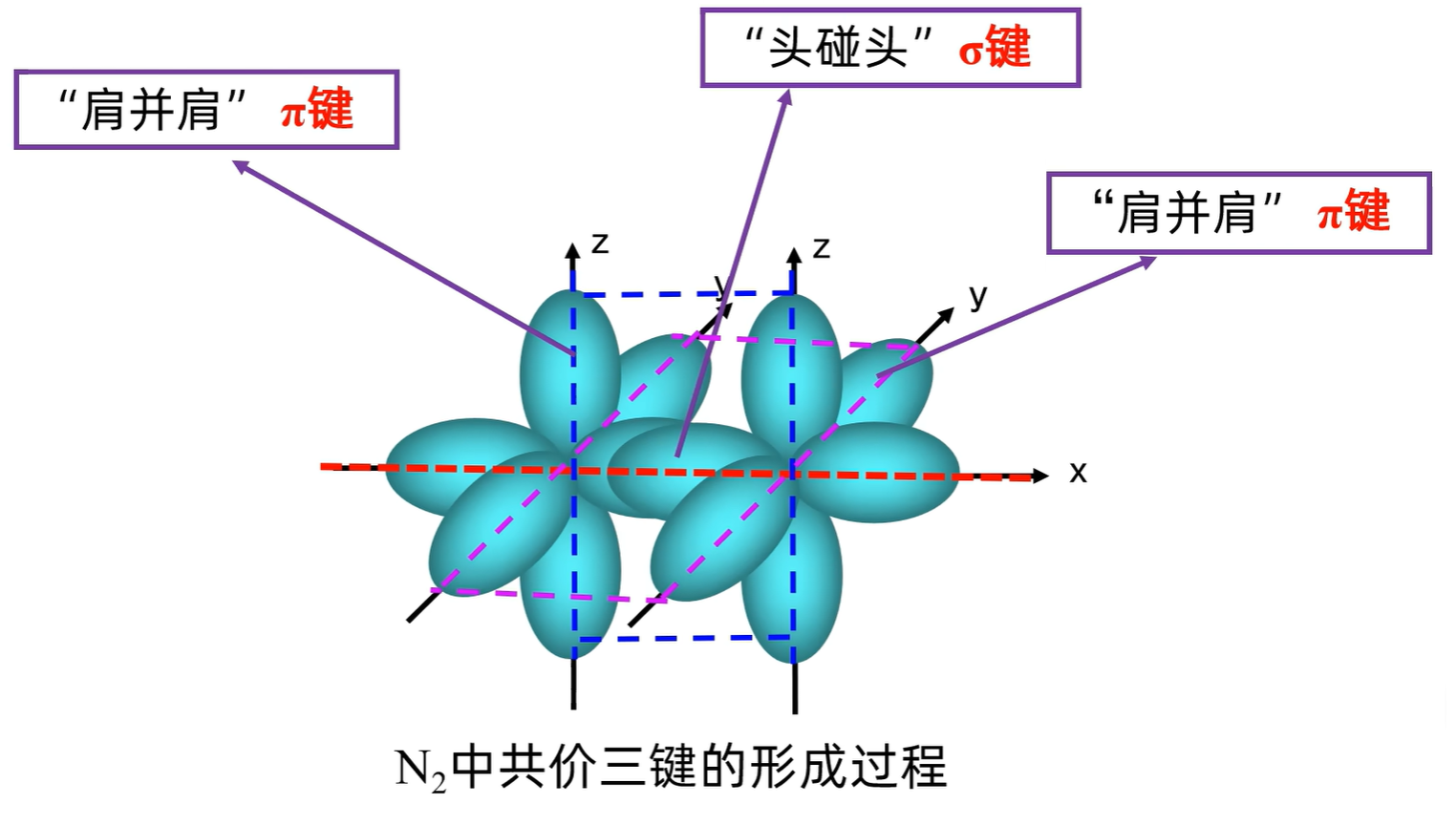 轨道或轨道「肩并肩」重叠形成 键:( 的 $ σ $ 键的形成)