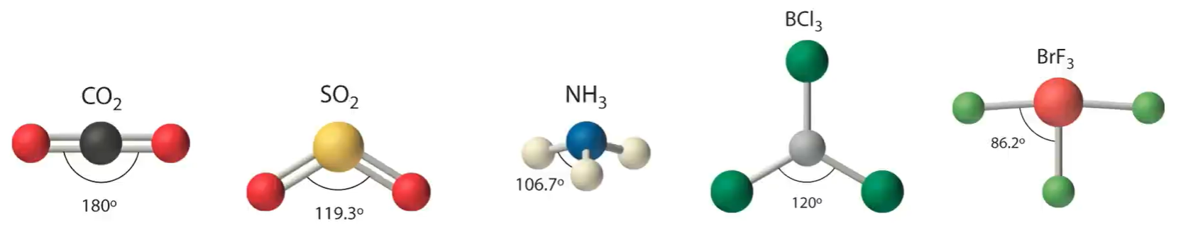 - 概念:在多原子分子中,两个相邻共价键之间的夹角