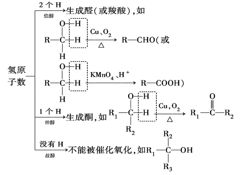 条件:与OH相连的碳必须有 H,才能发生催化氧化反应